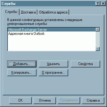 Для настройки почты запустите программу Microsoft Outlook. Зайдите в пункт Сервис -> Службы. В появившемся окне нажмите кнопку Добавить.