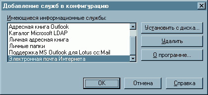 Выберите Электронная почта интернета и нажмите кнопку Ок.